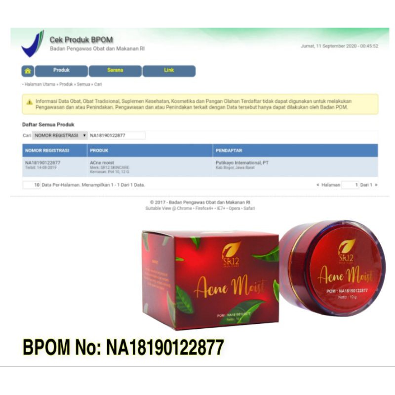 Acne Moist SR12 Cream Penghilang Jerawat BPOM Menjaga Kelembaban dan Melindungi Kulit dari Sinar UV