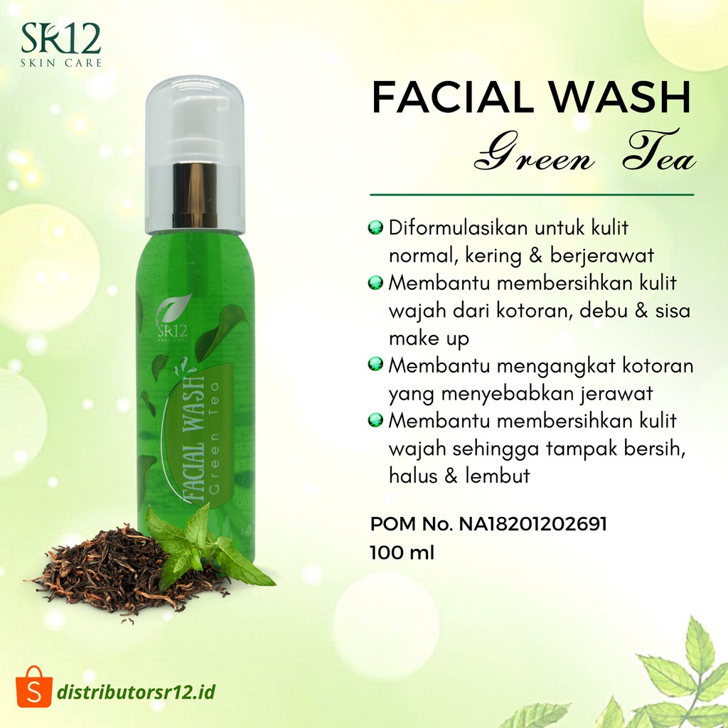 Facial Wash Green Tea SR12 100 ml Pembersih Wajah Kulit Kering Berjerawat Sensitif