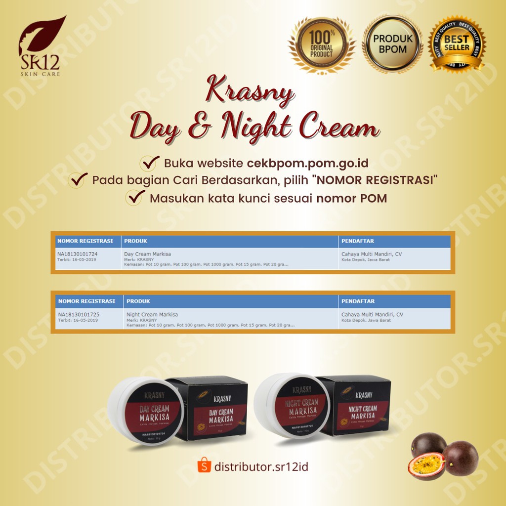Krasny Day & Night Cream SR12 Cream Wajah BPOM Kulit Kering Kusam Cream Pencerah Herbal