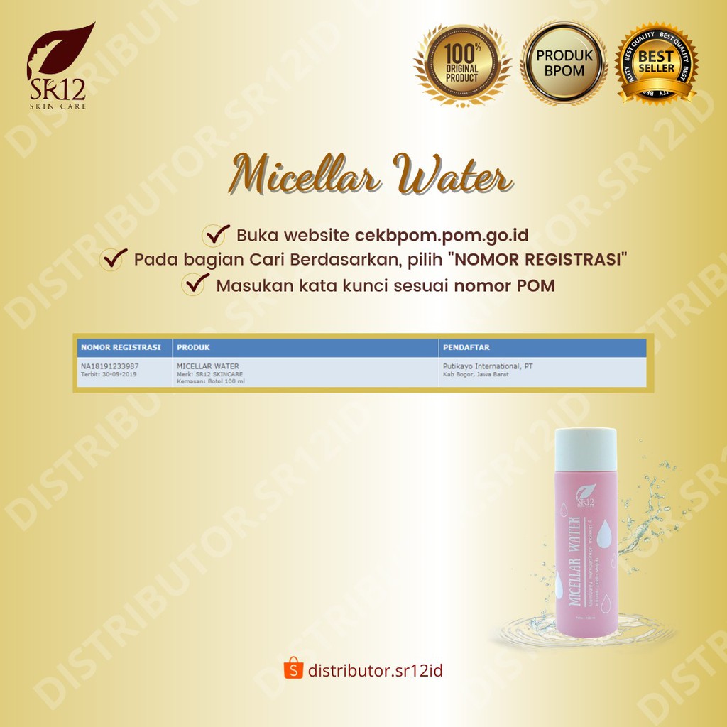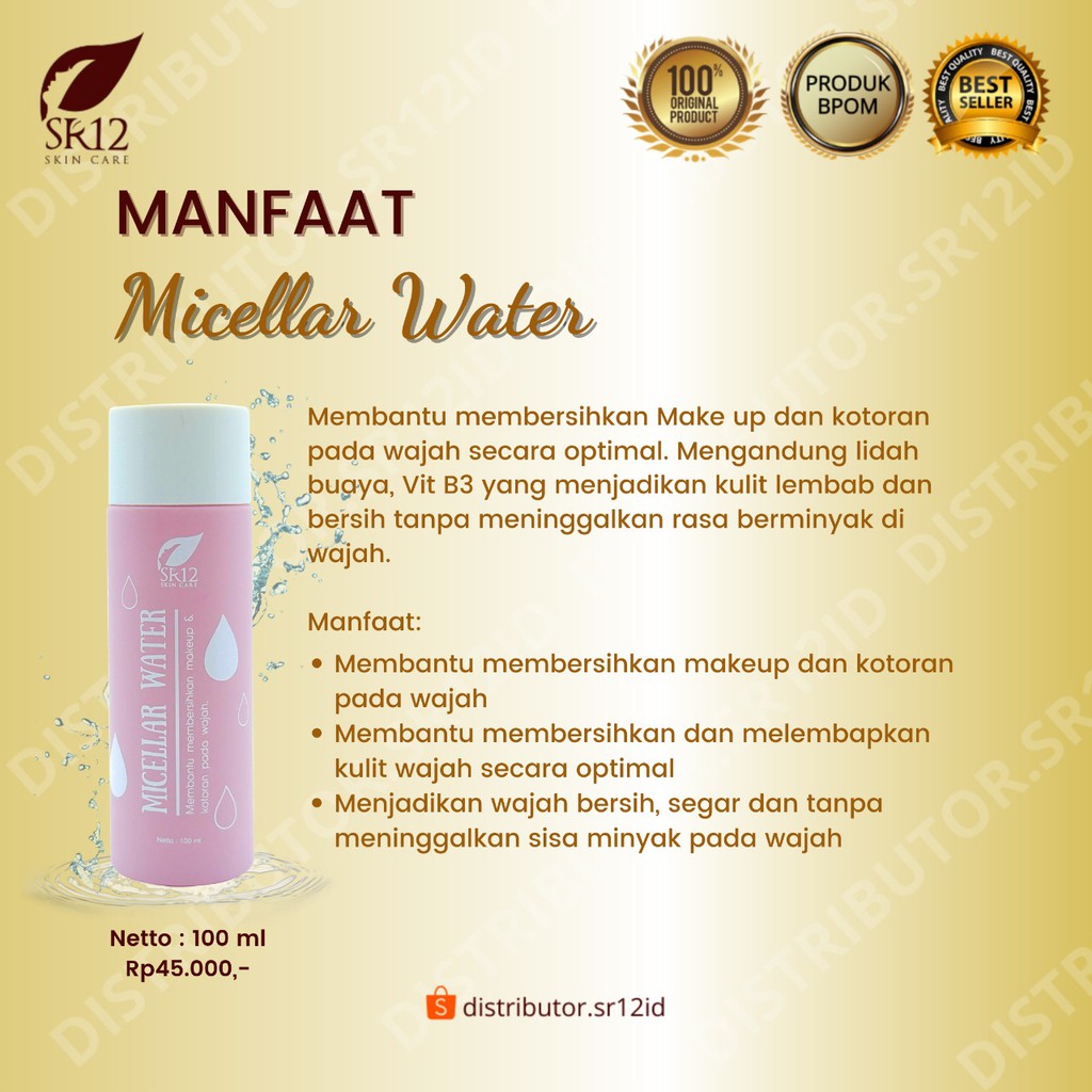 Micellar Water SR12 Cleansing Water Pembersih Wajah dan Makeup Secara Optimal 100 ml BPOM