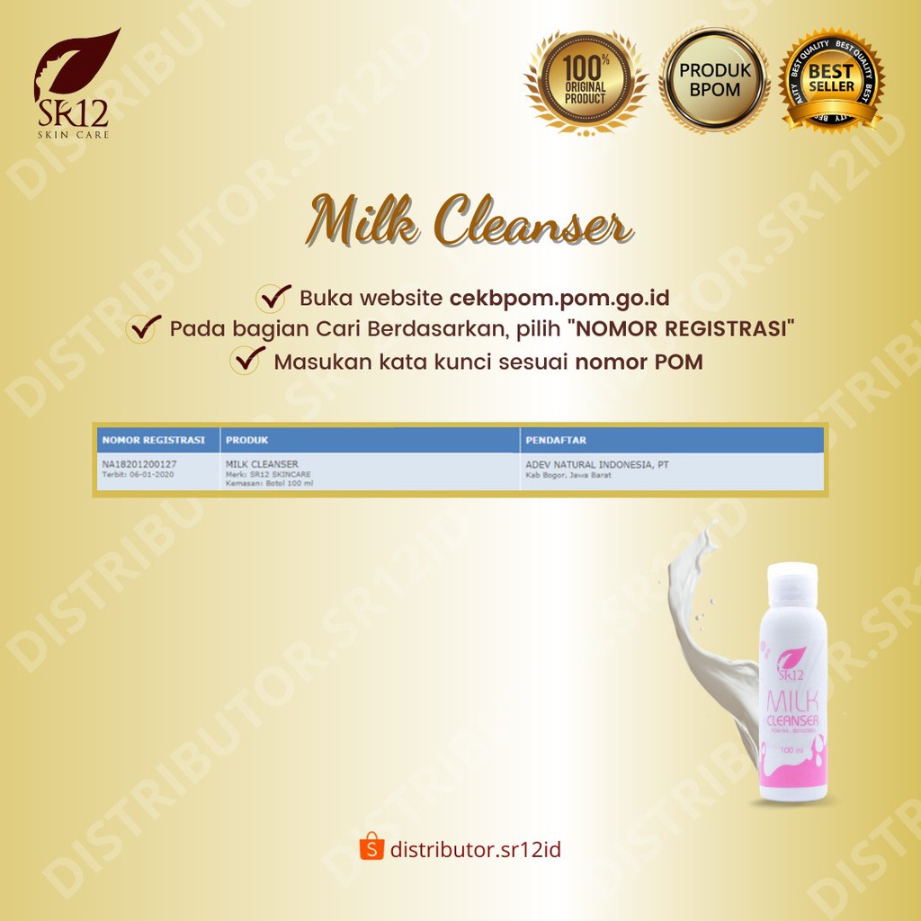 Milk Cleanser SR12 Pembersih Wajah BPOM Ampuh Mengangkat Sisa Makeup dan Kotoran Diwajah 100 ml