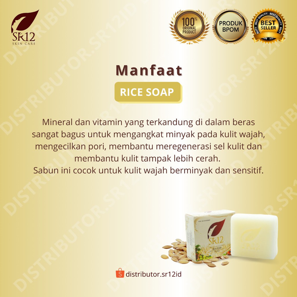 Rice Soap SR12 60 gr Sabun Beras Sabun Herbal Pembersih Wajah Kulit Berminyak Jerawat Sensitif