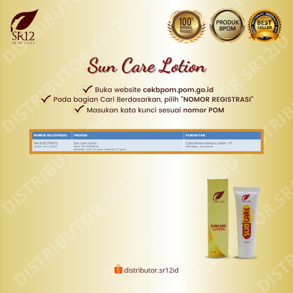 SUNCARE LOTION SR12 DENGAN SPF25/ CREAM WAJAH PELINDUNG DARI SINAR UV A&B / PELEMBAB WAJAH